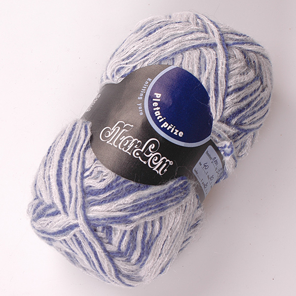Efektní vlněná pletací příze v barvě bílomodrého melíru s efektní nitkou a mohérovou přízí. Jemnou pletací přízi můžete použít i jako efektní příplet do svetru nebo na čepici či šálu. Pletací příze bude v pletenině tvořit nepravidelný melír, je jemná a nekousavá.