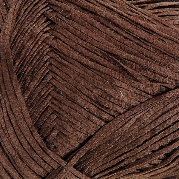 Stužková pletací příze v tmavě hnědé barvě. Stužková příze je tenká.