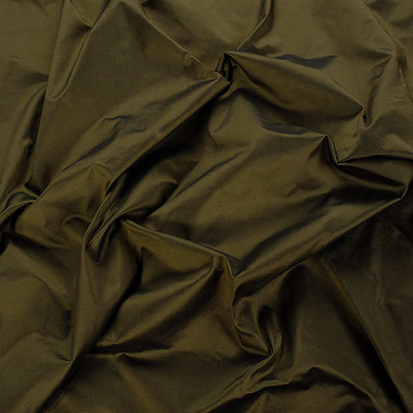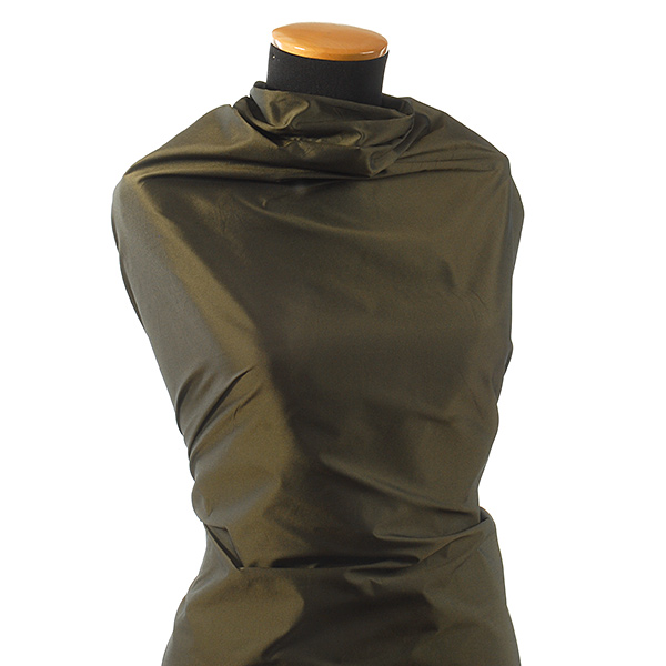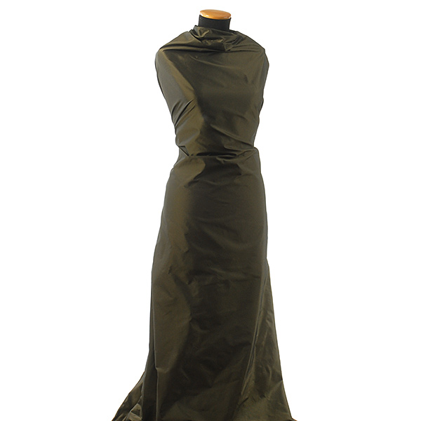 Taft metráž - látka pevnější taft v barvě olivověčerné. Látka má svůj charakteristický lesk, ostrý omak a elegantní vzhled.