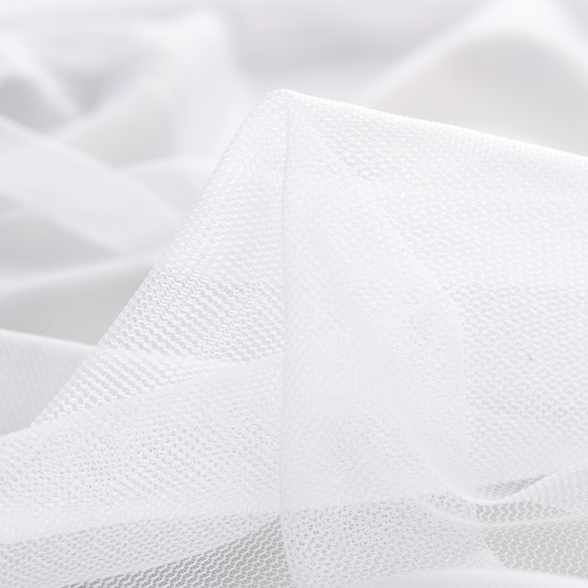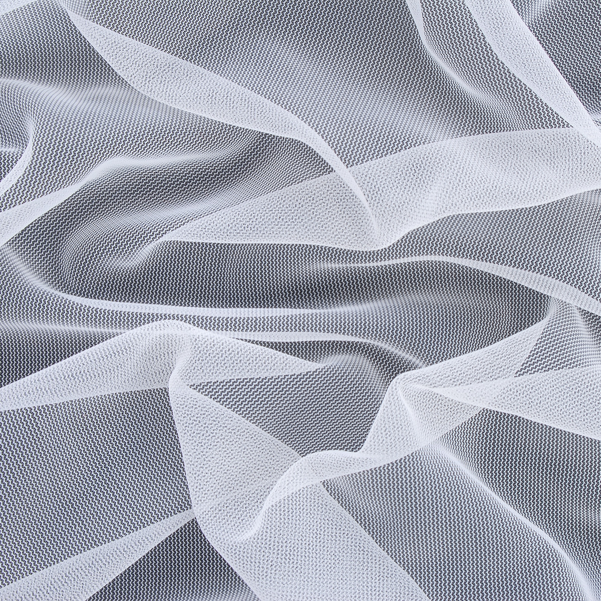 Látka jemný tyl síť v batvě lomené bílé s malými očky. Tyl je jemný, měkk a pružný jen lehce svou vazbou