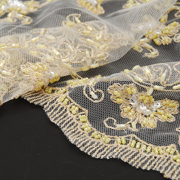 Zlatobéžová krajka na tylu vyšitá korálkami