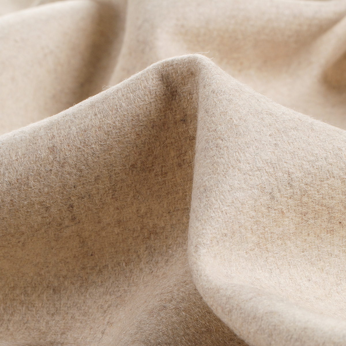 Vlněná kabátová látka smetanový melír oboustranná - teplejší vlněná látka v barvě smetanového melíru s vlasem. Látka má drobný vlas, je pevnější, ale není tvrdá.