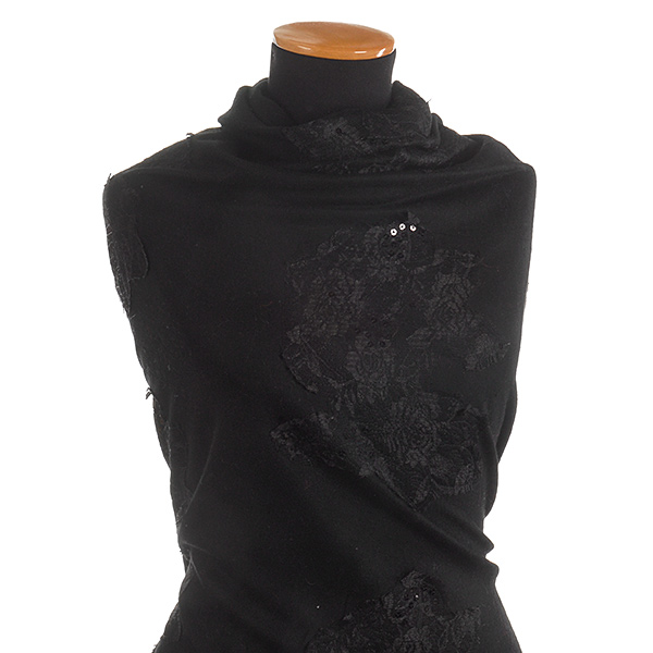 Vlněná látka s krajkovou aplikací černé barvy