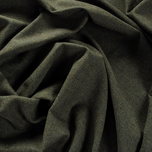 Vlněná látka tvíd na kostým - vlněná tweedová metráž s jemnou plátnovou strukturou a specifickými nopky v barvách tmavě zelených. Vlněná látka tvíd je mírně splývavá, lehce pružná svou vazbou a poddajná, bude dobře držet tvar. Látka má jemný vlas a je oboustranná, lze tedy kontrastně kombinovat.