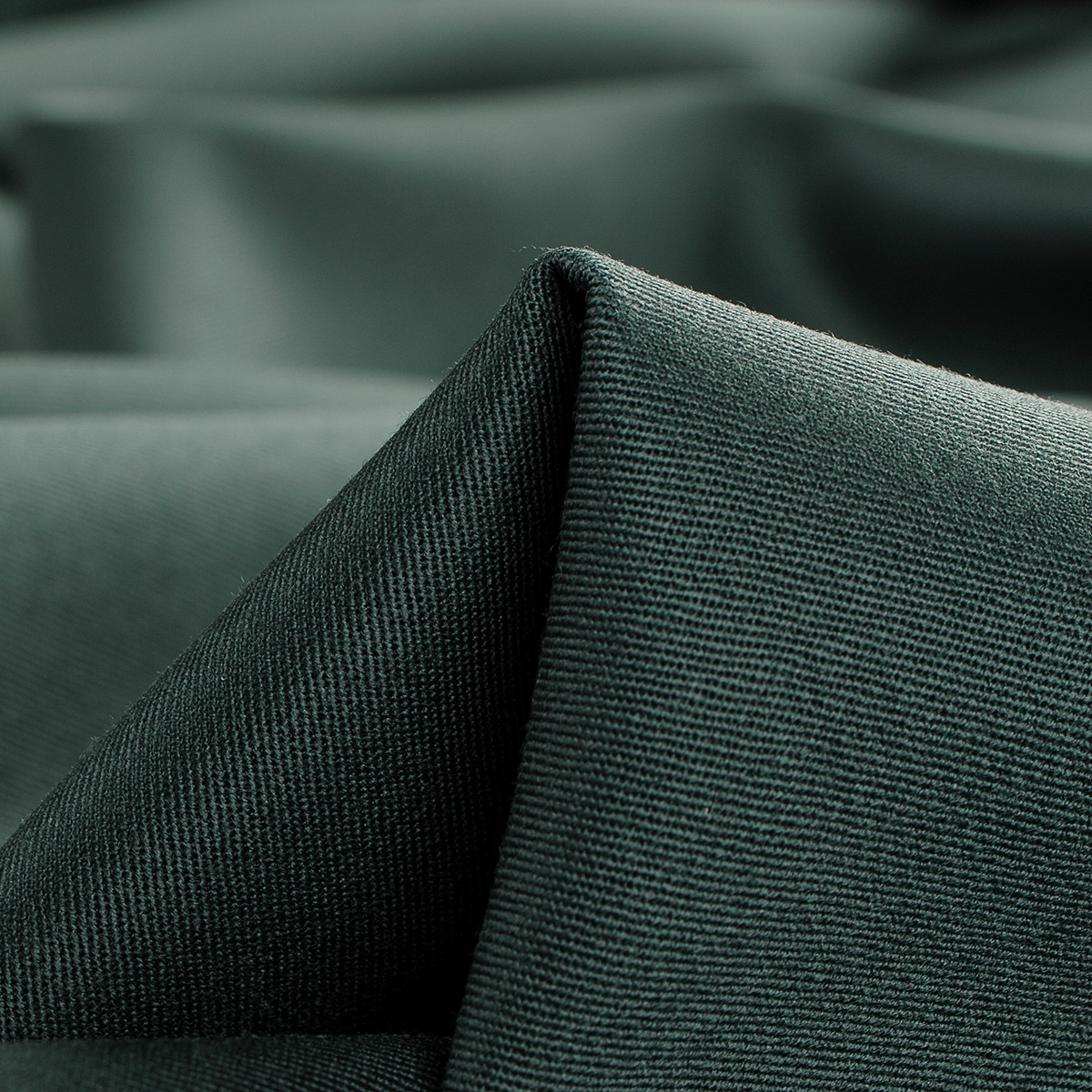 Kostýmová obleková vlněná látka v tmavě lahvově zelené barvě. Látka je střední síly vhodná na oblek, sako, sukně i kalhoty, je poddajná a lehce splývavá. Tkanina lehce pruží svou vazbou.