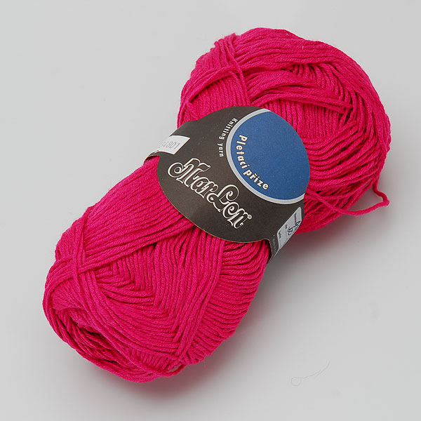 Vlněná směsová pletací příze v zářivé fuchsiové barvě. Příze je hladká, jemná a tenší.