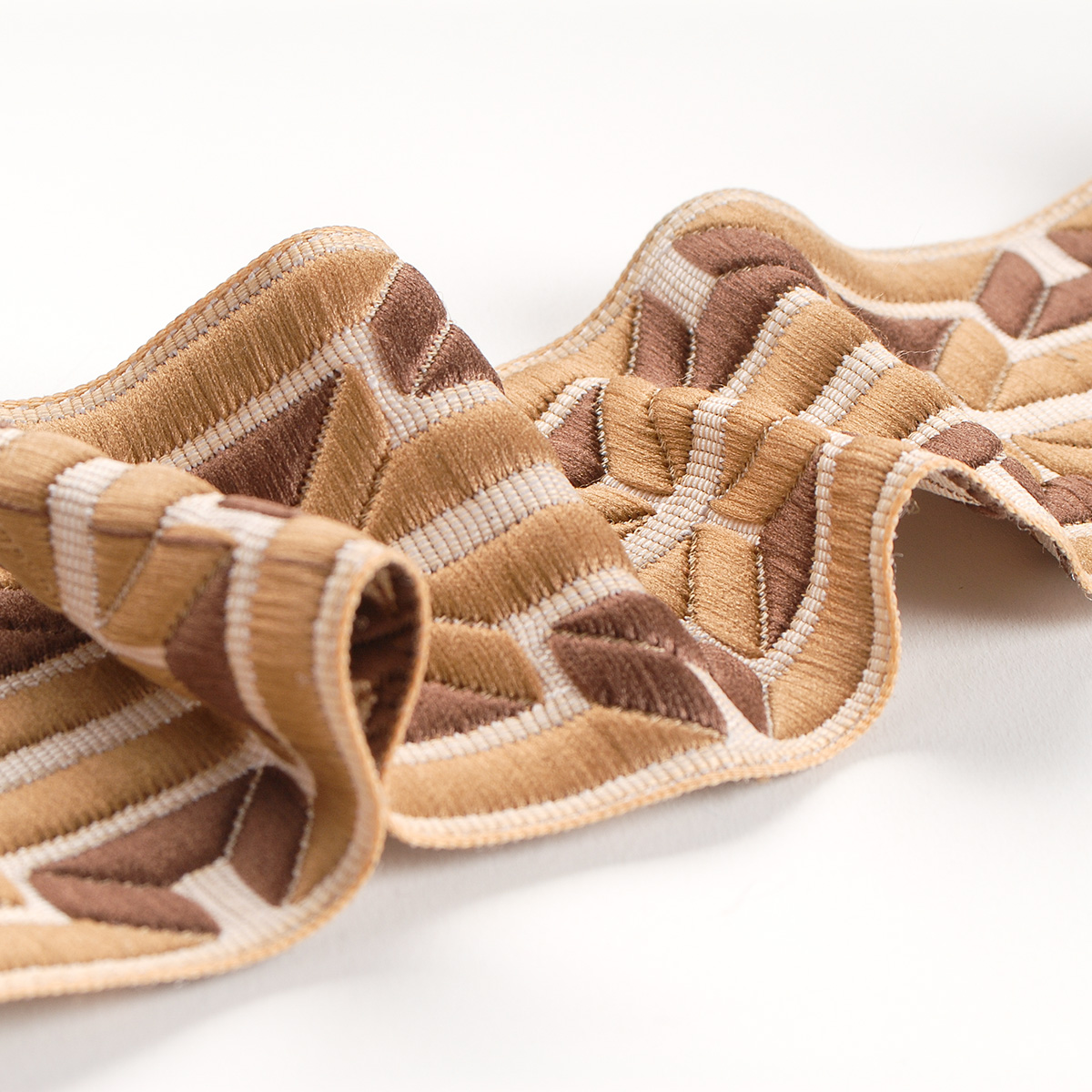 Vyšívaná stuha geometrický vzor hnědo-béžová