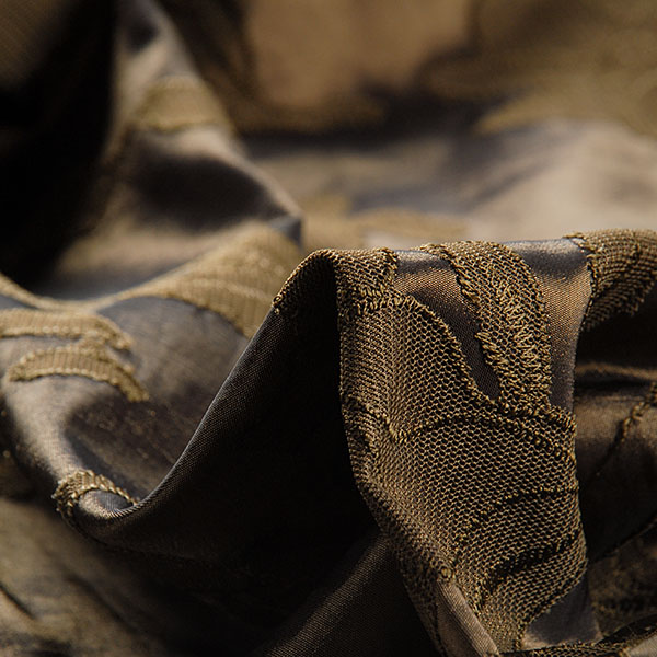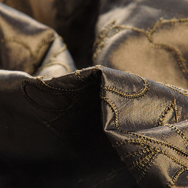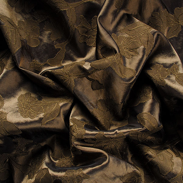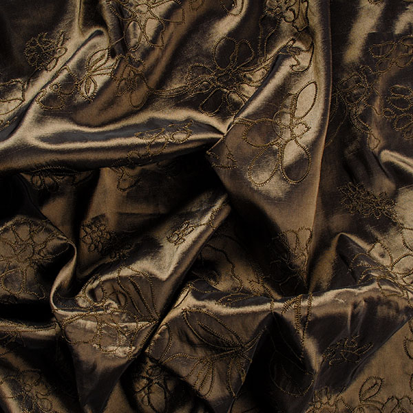 Vyšívaný taft vyšívaný taft olivové barvy s květinovou výšivkou. Vyšívaný taft taftová látka s lesklým povrchem nemačká se, je mírně splývavá a drží tvar.